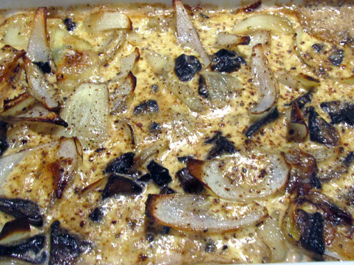 See what I mean? Looks like something the cat dragged in, doesn’t it? Well, let me tell you it tasted like joy on a fork. It was simple as can be to make too. Cut an onion into wedges, slice a few mushrooms and sauté til soft and then slice the tenderloin into steaks and brown in a hot skillet.